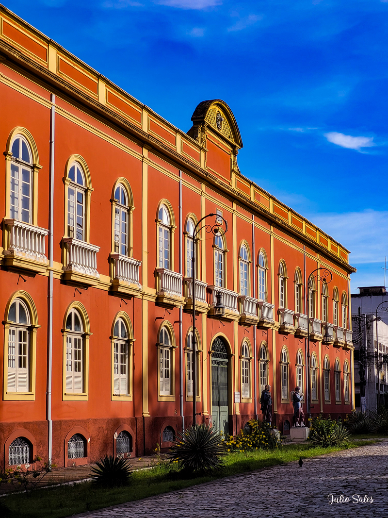 O prédio tem estilo eclético misturando as vertentes renascentistas, neoclássica e traços coloniais.