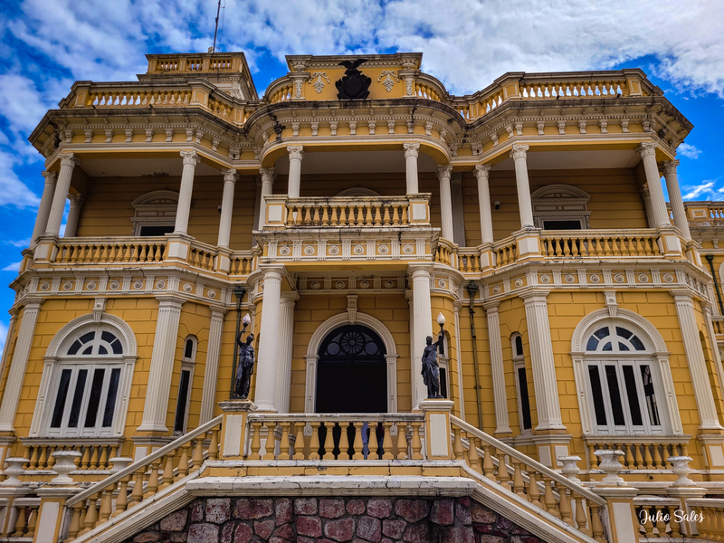O palácio começou a ser utilizado em 1900 mas ainda não estava completamente pronto. Construído na confluência de dois igarapés ele tinha um porto privativo que funcionava como ancoradouro de barcos que vinham dos seringais e levavam a borracha para a Europa.
