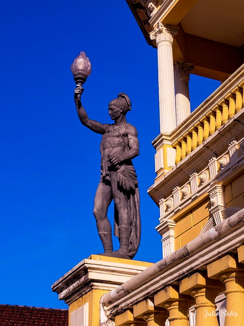 Diante da edificação existe uma estátua de ferro fundido que representa a Medusa. Acredita-se que sirva para a proteção espiritual da casa.