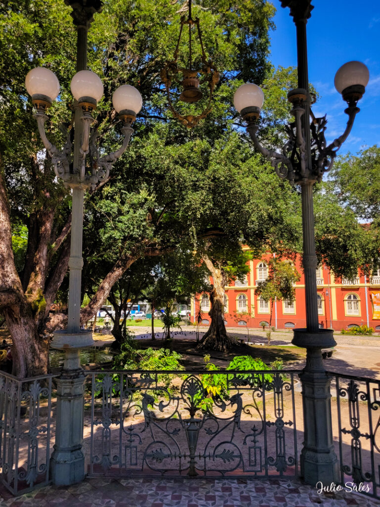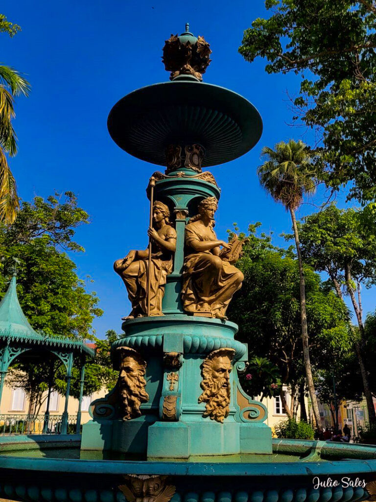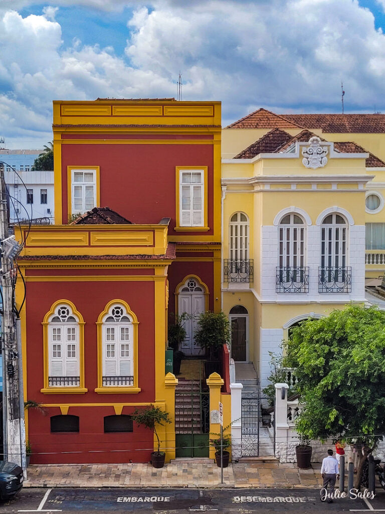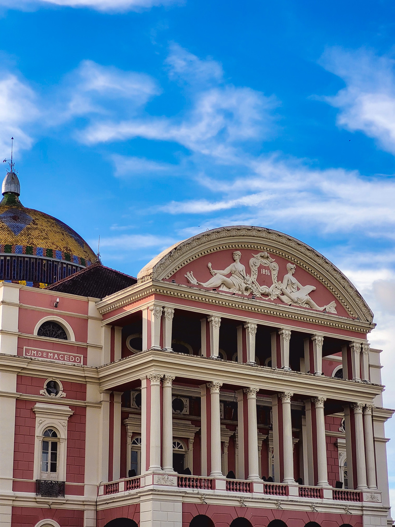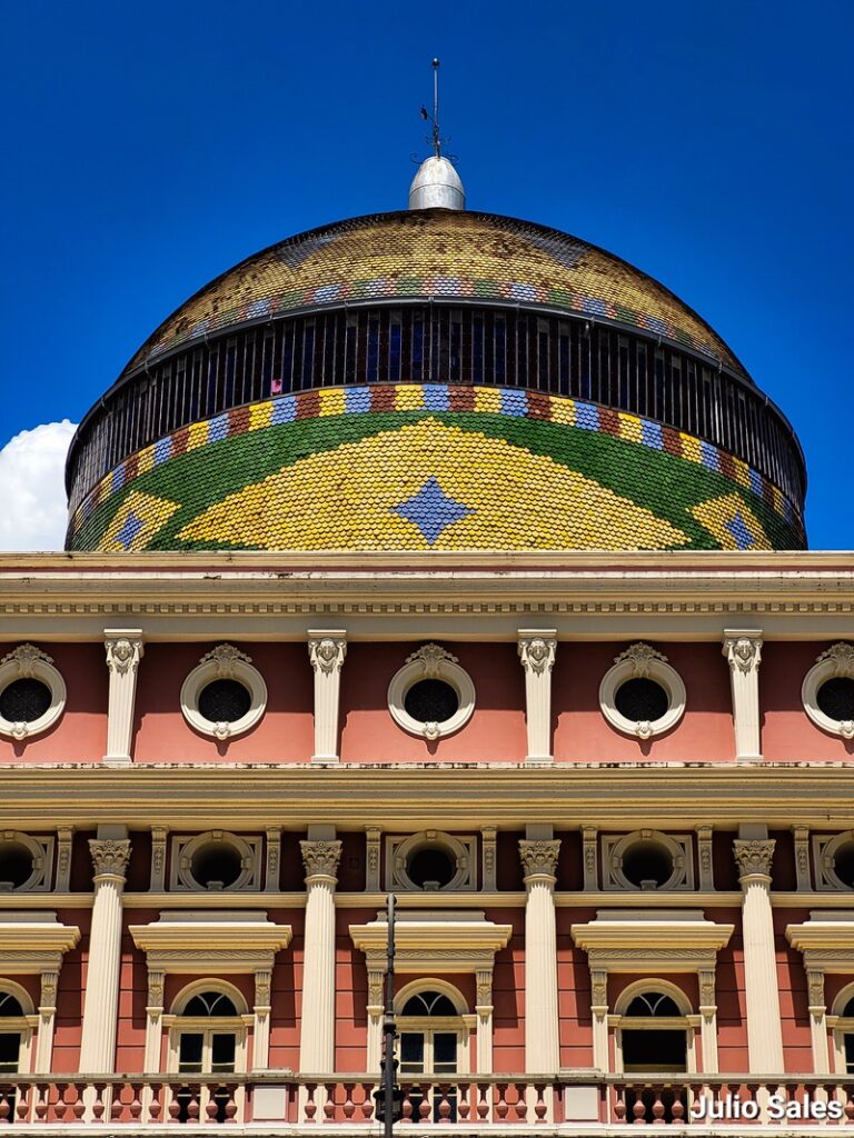 Uma das maiores preocupações no período Belle Époque em Manaus eram as fachadas dos prédios. Tinha que ser tudo suntuoso. Havia até mesmo leis que ditavam quais detalhes arquitetônicos deveriam estar presentes nas fachadas das casas na cidade. E não foi diferente no caso do Teatro Amazonas, a casa de ópera de Manaus.